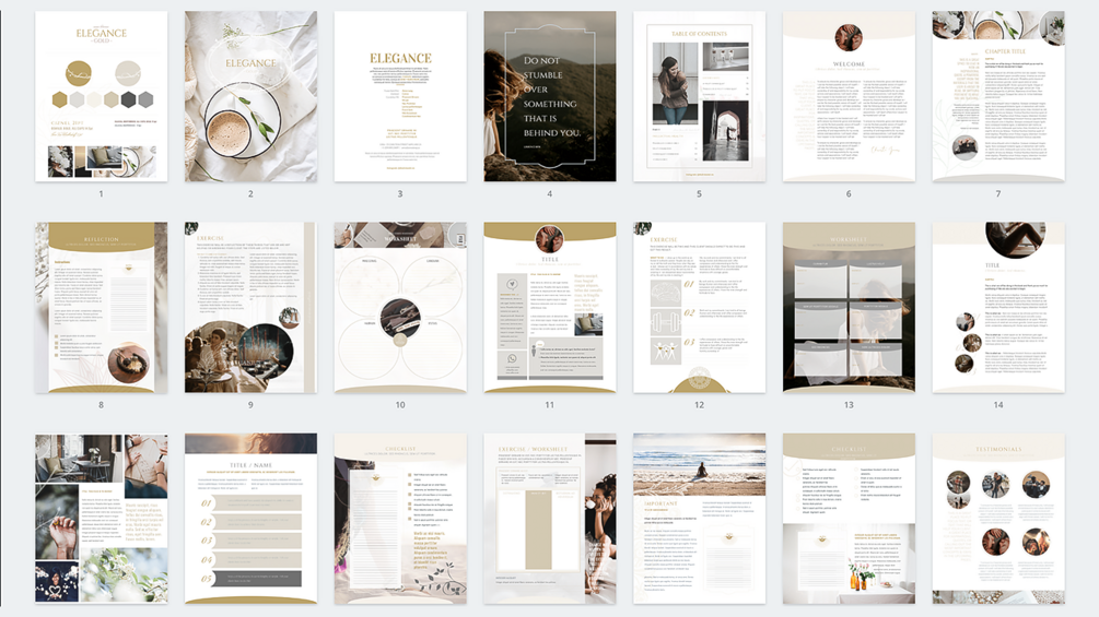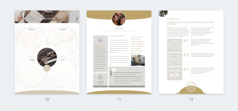 Stop wasting your time creating beautiful designs for your brand and spend your skills creating content! This elegant workbook template is made using gorgeous coffee & gold tones and to get you going and give you a beautiful home for your ideas.