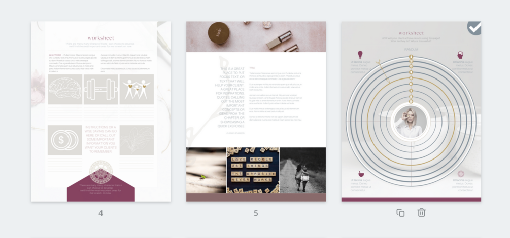6x - Worksheet Layouts, 4x Content Layouts, 1 Brand Style Page, 1x Chapter Title Page, 1x Cover Design, 1x Resources Page Design, 1x Quote Page Design, 1x Checklist page design